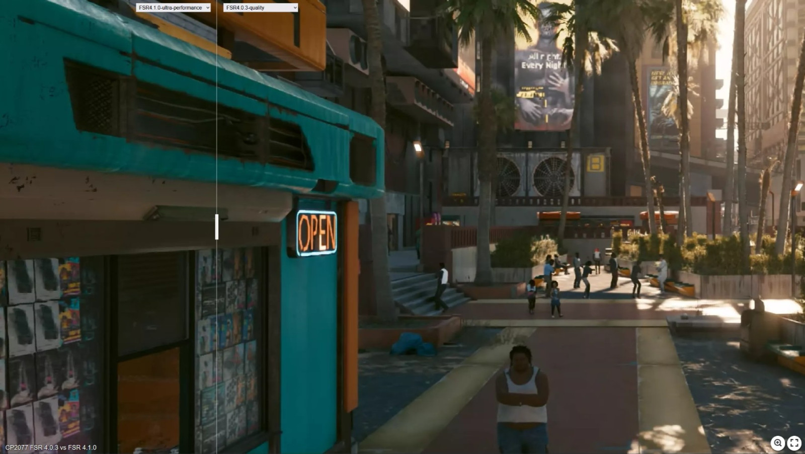 Örneğin Cyberpunk 2077’de FSR 4.1 Ultra Performance modu, FSR 4.0.3’ün Quality moduna yakın bir doku kalitesi sunuyor. Yakın ve uzak nesnelerde detay seviyesi artarken, gölgelerin daha uzak mesafelere kadar uzandığı görülüyor.