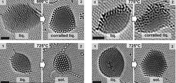 Bilim insanları, bu keşfi gerçekleştirmek için bir elektron tarama mikroskobu kullandı. Ulm Üniversitesi’nden Dr. Christopher Leist, deneyler sırasında erimiş metal nanoparçacıklarının atomlarının, parçacıkları ısıtmak için kullanılan grafen destek plakasındaki atomik ölçekli kusurlara takılı kaldığını gözlemledi. Elektron atışlarıyla daha fazla atomu sabitleyen araştırmacılar, böylece sabit atomlardan oluşan tam bir çember oluşturdu.