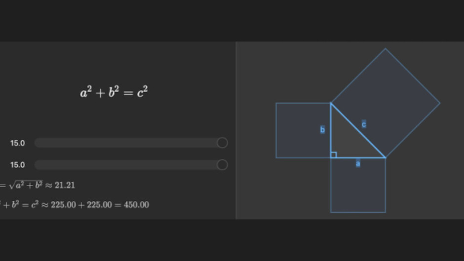 Örneğin Pythagorean theorem konusuna bakıyorsun. Üçgenin kenarlarını değiştiriyorsun. Hipotenüsün uzunluğu anında değişiyor.