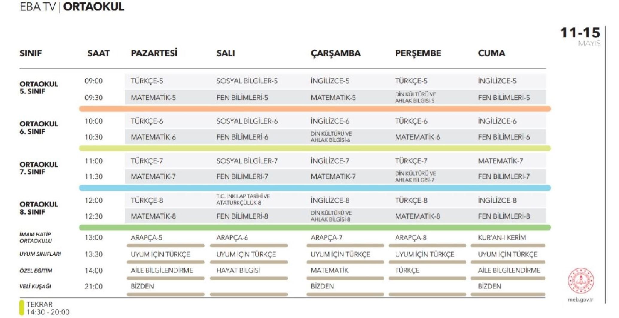 Yayınlar aynı kanalda ve gün içinde 1 veya 2 kez tekrar edilecek. Tekrarlayan yayın akışı da yine eba.gov.tr ve TRT internet sitelerinden öğrenilebilir.