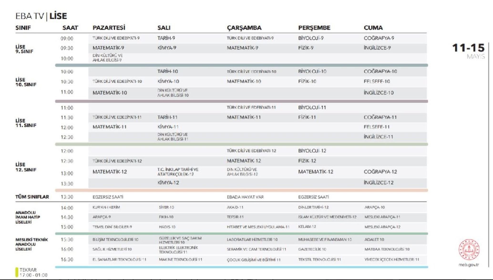 EBA TV YAYIN AKIŞI 11 - 15 MAYIS 2020