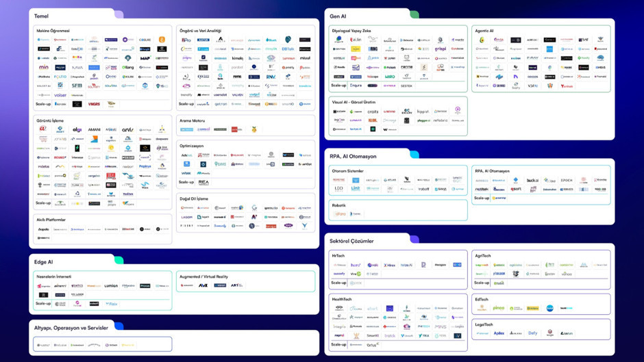 Yeni güncellemede özellikle "Agentic AI" kategorisindeki hareketlilik dikkat çekici. İş süreçlerini uçtan uca yönetebilen bu sistemlere odaklanan 5 yeni şirket haritaya dahil oldu. Bunun yanı sıra Diyalogsal Yapay Zeka ve eğitim teknolojileri (EdTech) alanlarında 3'er yeni girişim sisteme kayıt edildi. Makine öğrenmesi, hukuk teknolojileri, veri analitiği, RPA ve görsel üretim gibi teknik branşlarda ise 2'şer yeni katılım sağlandı. Tarım, sağlık ve nesnelerin interneti gibi spesifik alanlardaki girişimler, teknolojinin kullanım sahasını genişletti.