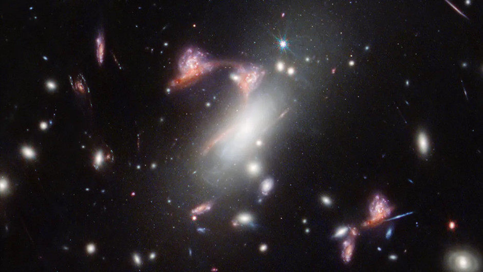 Uzaydaki bu “soru işareti” manzaraları tek bir örnekle sınırlı değil. Gökbilimciler, 2024 yılında “MACS-J0417.5-1154” adlı devasa bir galaksi kümesini incelerken gökyüzünde ikinci bir soru işaretiyle daha karşılaştı. Ancak bu ikincisi, ilkinden çok daha karmaşık bir fiziksel olayın sonucu olarak ortaya çıkmıştı. Kütleçekimsel merceklenme adı verilen bu olayda, ön plandaki devasa galaksi kümesinin sahip olduğu muazzam ağır kütle, uzay-zamanın kendisini büküyordu. Bu bükülme, arkasındaki uzak galaksilerin ışığını tıpkı bir büyüteç gibi eğip bükerek hem büyütüyor hem de görüntüsünü gökyüzünde birkaç kez çoğaltıyor.