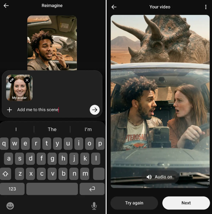 Avatarınız hazır hale geldikten sonra sadece metin komutları yazarak sekiz saniyeye kadar videolar oluşturabiliyorsunuz. Mevcut Shorts videolarına kendi avatarınızı eklemek isterseniz "Remix" ve ardından "Reimagine" seçeneklerini takip etmeniz yeterli.