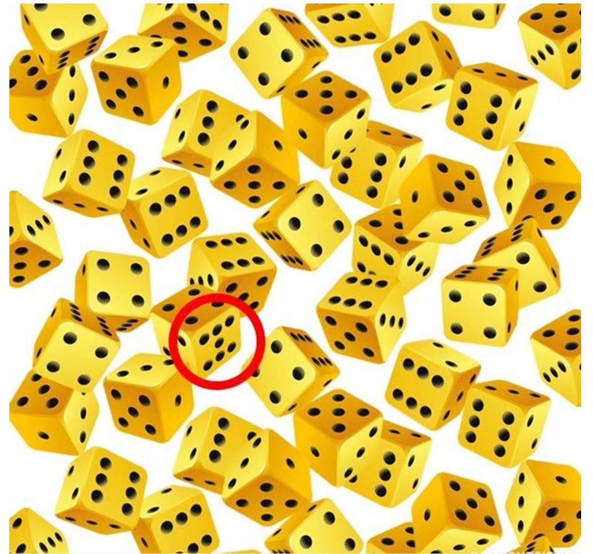 CEVAP: İşaretli zarda 6 yerine 7 nokta var. 7 noktalı zar yanlış olanı