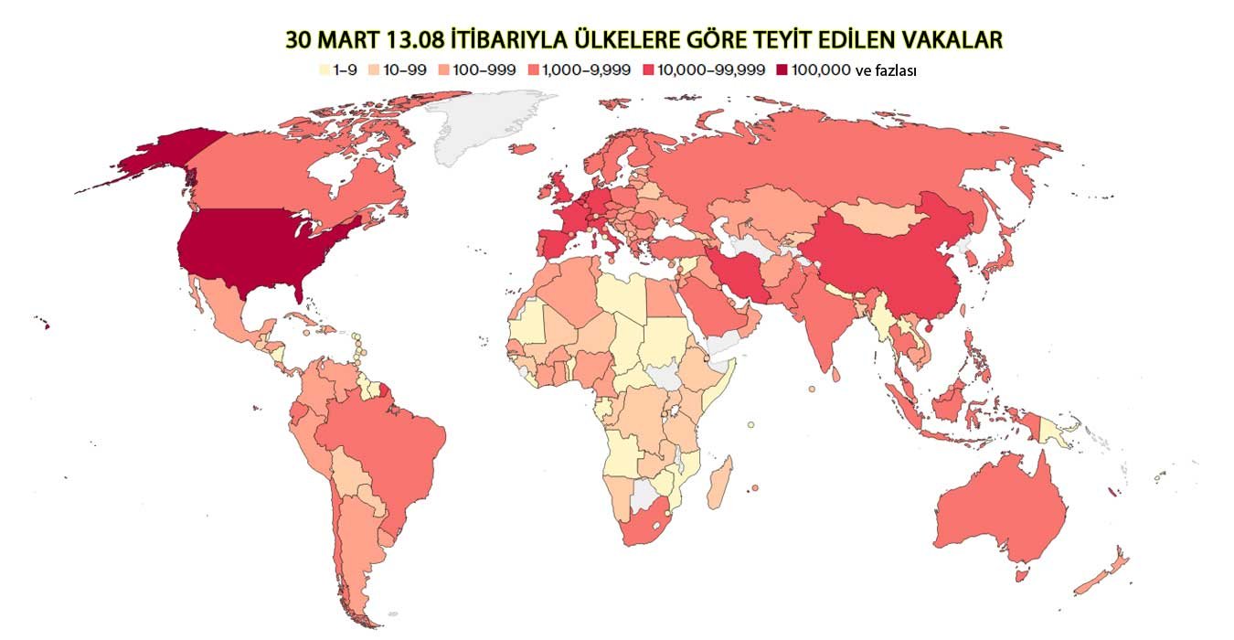 - Worldometers'ın 30 Mart 2020, 09.33 tarihli yayımladığı rapora göre, Almanya'daki toplam Koronavirüs vaka sayısı 62.435.