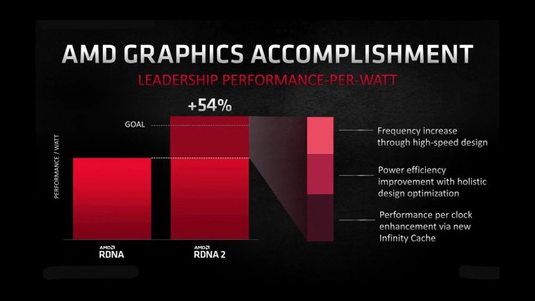 Yeni RDNA 2 mimarisi, selefine kıyasla büyük iyileştirmeler vadediyor ve bunların başında watt başına performansı yüzde 54 arttırması geliyor. Mimari ayrıca aynı 7nm düğümde, yüzde 30 daha yüksek frekans sağlayabiliyor.