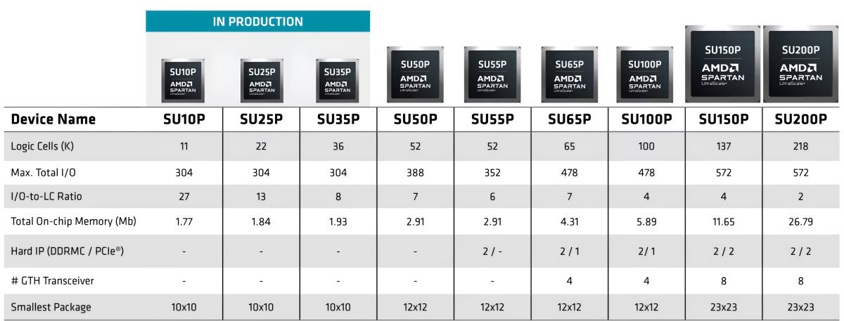 AMD, Spartan UltraScale+ FPGA ailesinin ilk modellerinin seri üretime geçtiğini duyurdu. Serideki en küçük üç model olan SU10P, SU25P ve SU35P artık siparişe açıldı ve Vivado Design Suite 2025.1 sürümünde üretim cihazı desteğiyle kullanıma sunuluyor.