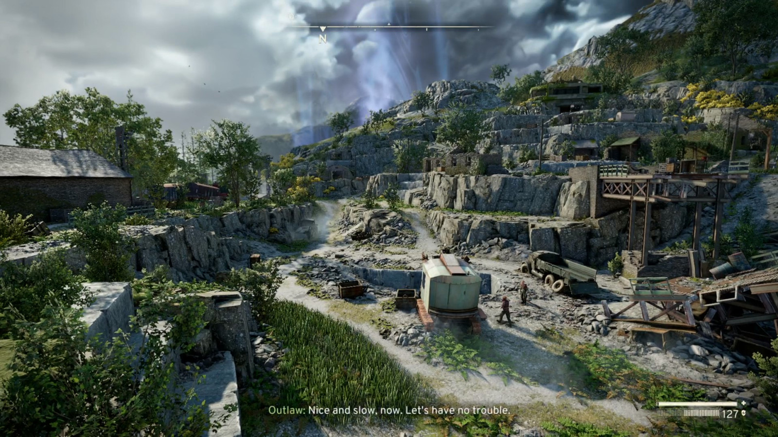 Önerimiz boş zamanlarınızda keşfe çıkmanız olacak. Çünkü Atomfall bize nereye gideceğimizi söylemiyor. Hedefi takip etmek için ok işaretleri veya GPS tarzı yol işaretleri de yok. Bunun yerine, NPC'lerin bize söylediklerine ve okuduğumuz her şeye dikkat etmeli, haritada koordinatları aramalı ve haritada kendi işaretçilerimizi yapmak zorundayız. Bazılarının sıkıcı bulabileceği bu dinamik, deneyimin temel taşlarından birini oluşturuyor. Aynı şey görevler için de geçerli. Takip edebileceğimiz “ipuçları” buluyoruz ve böylece sonunda önemli bir hedefe ulaşabiliyoruz. Bunlar genellikle birbiriyle bağlantılı ve bizi daha da büyük görevler keşfetmeye yönlendiriyor, ancak her zaman ana hedefimizin karantina bölgesinden kaçmak olduğu gerçeğini gözden kaçırmamak gerekiyor. Oyunun bu belirsizlik hali en başta en kolay seçeneği seçmiş olsanız da pek değişmiyor. Çünkü asıl amaç bu!