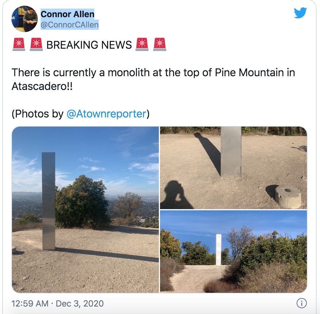 Kısa bir süre sonra, Güney Kaliforniya'daki bir dağ yolunun tepesinde, yeni bir monolit daha görüldü ve bu da kısa süre sonra yok oldu.