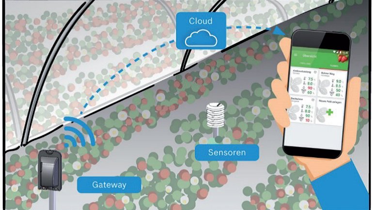 Deepfield® Connect- Strawberry Monitoring ise, az önceki sistemin farklı bir versiyonu. Bu defa çilek üretimini konu alan Bosch, bu sistem ile özellikle geçtiğimiz yıl Avusturya çiftçilerinin yaşadığı zorlukları bu yıl unutturmayı amaçlıyor. 2016 yılında nisan sonu gece sıcaklığının ani olarak -6 dereceye kadar düşmesi ve çiftçilerin bu durumdan geç haberdar olması sonucu ancak ikinci gece tepki verebilmeleri, büyük kayıp yaşamalarına sebep olmuş. Fakat Deepfield® Connect yoluyla çilek bitkisinin yanındaki hava sıcaklığını, nemi, poların üzerindeki hava sıcaklığı ve toprak nemini ölçümleyebilen Bosch, yine akıllı telefon ve tablete anlık veri aktarmasıyla çiftçinin her an haberdar olmasını sağlıyor.