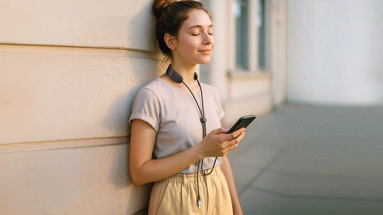 Ürün, boyun bölgesine yerleştirildiğinde titreşimli başlıkları aracılığıyla masaj yapabiliyor. Telefon veya powerbank üzerinden enerji alan kablo, üç farklı masaj modu sunuyor. Bu işlev, uzun süre bilgisayar başında çalışan veya hareket halindeyken kısa süreli rahatlama arayan kullanıcılar için tasarlanmış.
