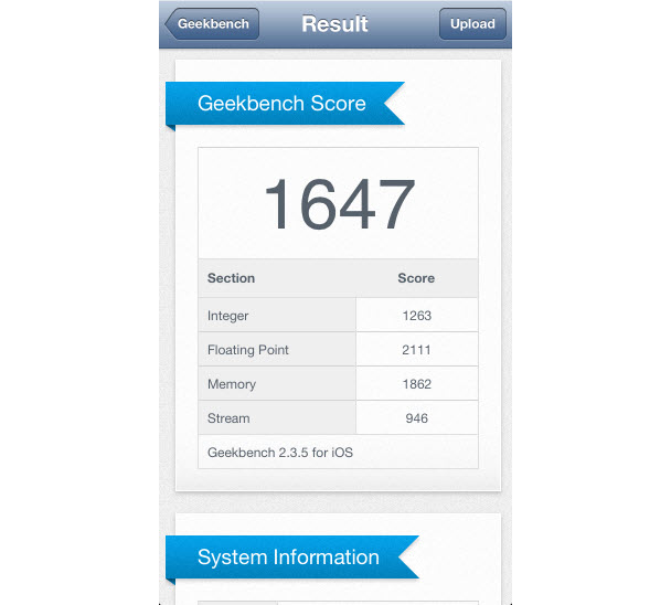 Şimdi sıra iPhone 5'in gerçekten Apple'ın dediği gibi iki kat hızlı olup olmadığını sınamaya etmeye geldi. Geekbench'e göre iPhone 5'deki çift çekirdekli 1GHz işlemci ve 1GB RAM, aşağıdaki puanları almayı başardı: