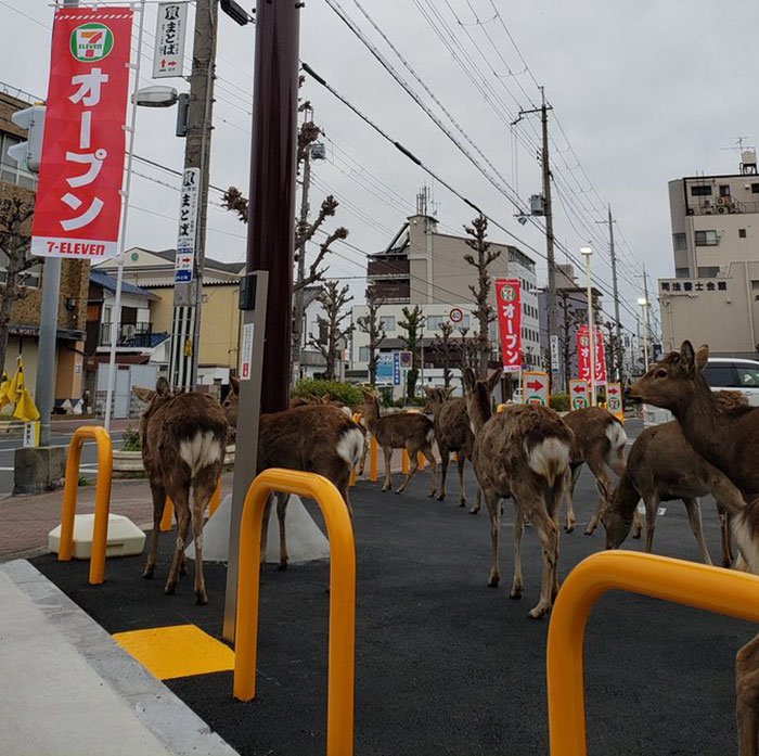 Şimdi kendilerini besleyen ziyaretçiler olmayınca, geyikler sokaklarda dolaşmaya başladı. İnsanlar tarafından beslenmeye alışkın oldukları için, geyikler fotoğraflarının çekilmesini sakin karşılıyorlar.
