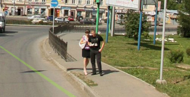 24 yaşındaki Marina Voinova, Google Street View'un Rus sürümünde Perm'deki bir adresi ararken yolda tanıdık bir siluet gördüğünü söylüyor. "İlk başta tanıdık bir erkek silueti gördüm. Yakından bakınca onun nişanlım Sasha olduğunu anladım; yanında başka bir kadın vardı. Kolundaki alçı, tüm şüphelerimi giderdi çünkü daha bu yaz elini kırmıştı."