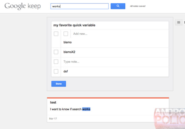 Google Keep'ten birkaç ekran görüntüsü daha!
