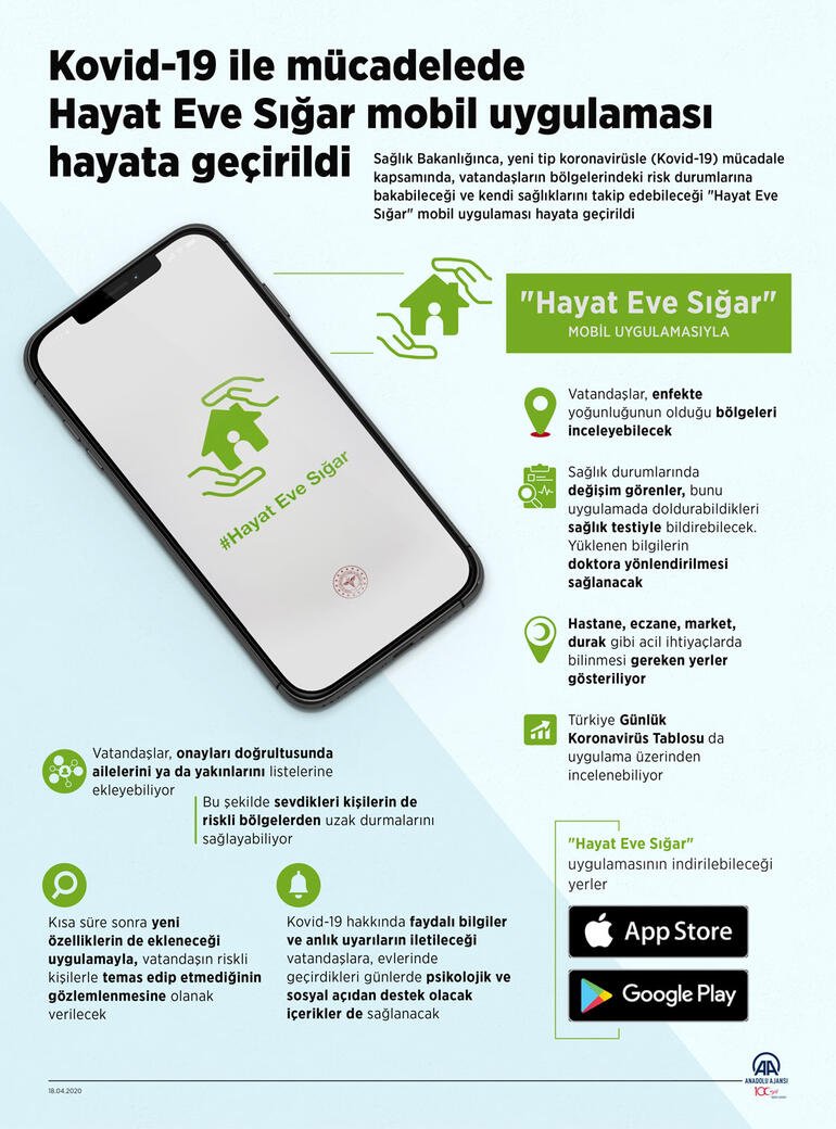 Koronavirüs salgını kapsamında vatandaşların bölgelerindeki risk durumlarına bakabilmelerine ve kendi sağlıklarını takip edebilmelerine imkan tanıyan "Hayat Eve Sığar" mobil uygulaması geçtiğimiz haftalarda hayata geçirilmişti.
