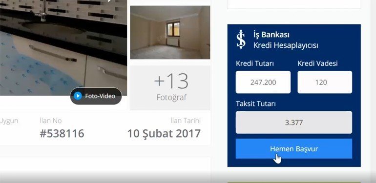 Evinizin özelliklerini beğendiyseniz ve satın almaya karar verdiyseniz, hemen Zingat.com'da yer alan İş Bankası Kredi Hesaplayıcısı yoluyla ev kredisi başvurunuzu yapabiliyorsunuz.