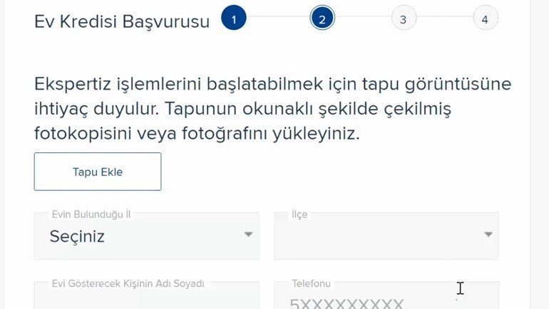 Evet, kredi başvurumuzun ön değerlendirmesi olumlu sonuçlandı. Şimdi ekspertiz işlemini başlatmak için tapu örneği girmemiz gerekiyor. Bunu da oldukça kolay şekilde, birkaç adımda halledebiliyorsunuz. Tapu örneğini ekledikten sonra, evin bulunduğu il, ilçe, evi gösterecek kişinin adı soyadı ve telefonunu belirtiyorsunuz. Hemen ardından ekspertiz ücretini ödeyebilmeniz için ilk kez Türkiye İş Bankası tarafından uygulanan bir sistem parmağınızın ucuna geliyor: