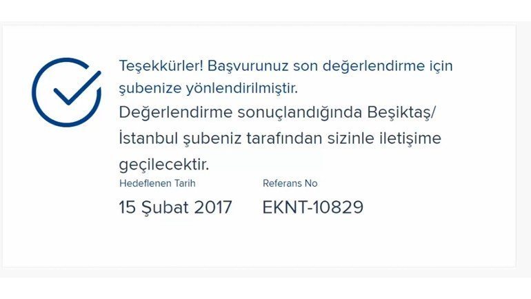 Ekspertiz raporu da tamamlandıktan sonra cep telefonumuza gelen SMS yoluyla işleme devam edebiliyor veya vazgeçebiliyoruz. Eh, buraya kadar gelmişken artık geri dönmeyecek ve bu evi satın alacağız. Son kez "Devam" diyor ve artık Türkiye İş Bankası'nın ıslak imza için davetini bekliyoruz. Artık karşılıklı bir keyif kahvemizi içeriz.
