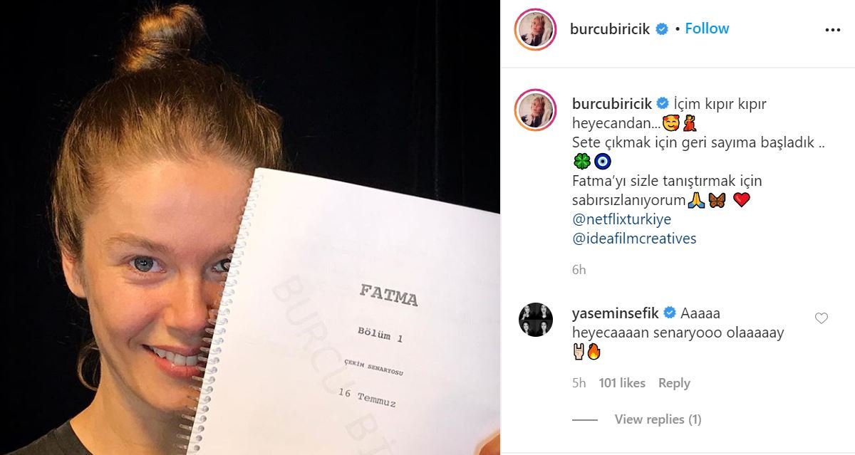 Burcu Biricik ise kendi instagram hesabından "İçim kıpır kıpır heyecandan...Sete çıkmak için geri sayıma başladık. Fatma'yı sizle tanıştırmak için sabırsızlanıyorum" mesajını paylaştı.