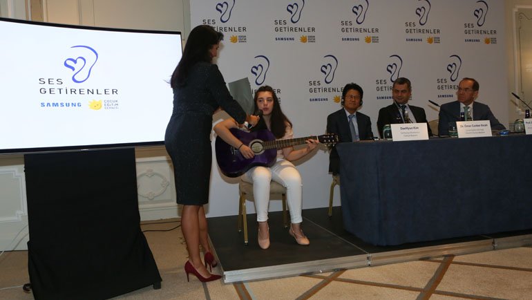 Basın toplantısında söz alan Samsung Electronics Türkiye Başkanı DaeHyun Kim, bu projenin bir parçası olmaktan gurur duyduklarını ifade etti. Kim, işitme engelli çocuklara eğitimde fırsat eşitliği sağlanabilmesi için okul öncesi dönemde ailelerinin desteklenmesi gerektiğini kaydetti. Kim konuşmasına şu sözlerle devam etti: "Samsung olarak sadece iyi teknolojiler geliştirmek ve üretmek için değil, iyi bir dünya ve daha mutlu hayatlar için de çalışıyoruz. Bunu gerçekleştirebilmek için, hayatı zenginleştirecek ve daha iyi bir gelecek hazırlamamıza katkı sağlayacak projeler üretiyoruz. Ses Getirenler projesini de 'Birlikte İyi Gelecek' mottosundan hareketle hayata geçiriyoruz. Çocuk Eğitim Derneği'yle birlikte işitme engelli çocukları olan ailelerin desteklenmesi için hazırlanan bu proje kapsamında kurduğumuz web sitesi ile işitme engelli çocuğu olan ailelerin ihtiyaç duyabilecekleri bilgileri dijital ortama aktarıyoruz. Böylelikle işitme engelli çocukların da her çocuk gibi eğitim almalarına, hayallerinin peşinden gidip mutlu bir hayat sürmelerine destek olmak istiyoruz."