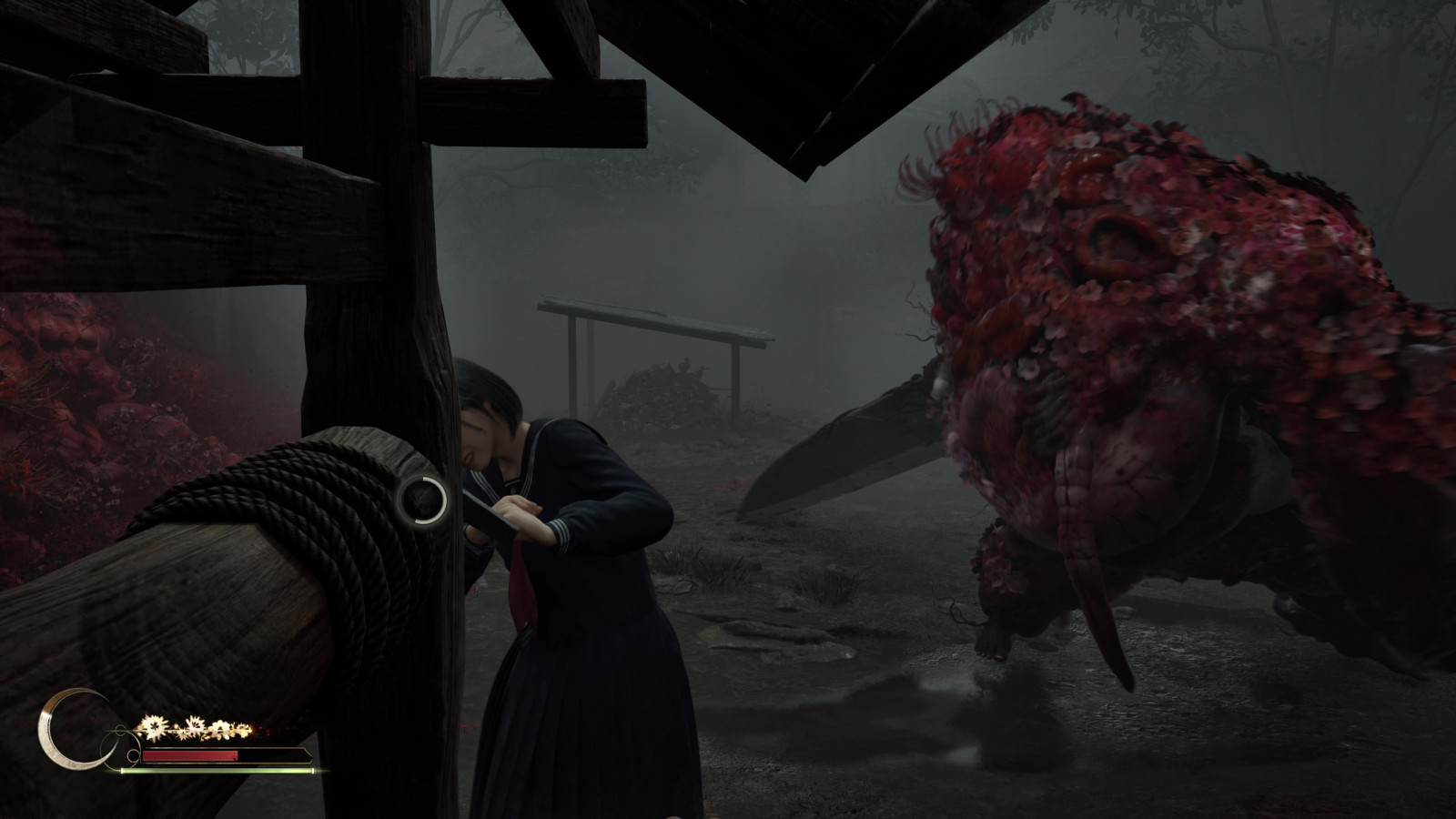 Silent Hill f’in klasik Silent Hill oyunlarından biri olmadığını belirtmiştik. Geleneksel mekaniklerinden ilham alsa da kendine has bir yapı kurmayı başarıyor. En dikkat çekici yönlerinden biri, savaş sisteminin stratejik biçimde tasarlanmış olması. Dövüşlerde doğrudan saldırmaktansa, düşmanları işaretleyip doğru zamanı beklemek gerekiyor. Kahramanın hayatı, ekranın sol alt köşesinde görülebilen üç çubukla yönetiliyor. Bunlardan ilki, konsantre olma yeteneğini temsil eden Akıl Sağlığı: Sol tetiğe basmak, düşmanların hareketlerini yavaşlatan ve daha fazla hasar vermesini sağlayan bir "odaklanma" modunu etkinleştiriyor. Odaklanmayı geri kazanmak için Ramune veya İlahi Su gibi belirli eşyalar kullanması gerekiyor.