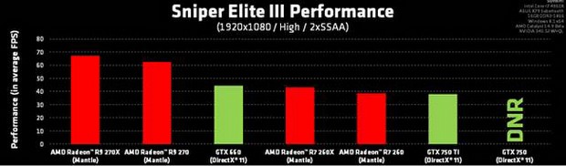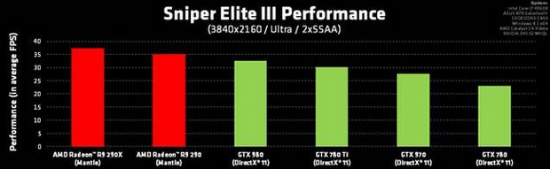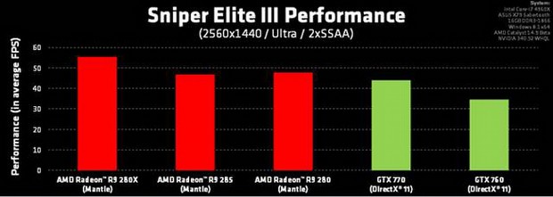 AMD, Sniper Elite III için Mantle yaması yayınladı. Bu yama ile oyunda daha yüksek performans almak mümkün. AMD Radeon ve Mantle kombinasyonu, en yüksek resim karesi hızıyla oyun oynamayı sevenler için yüksek performans sunuyor. Tablolarda görüldüğü gibi AMD donanımı Mantle teknolojisinin kapasitesini yüksek hızda kullanıyor.