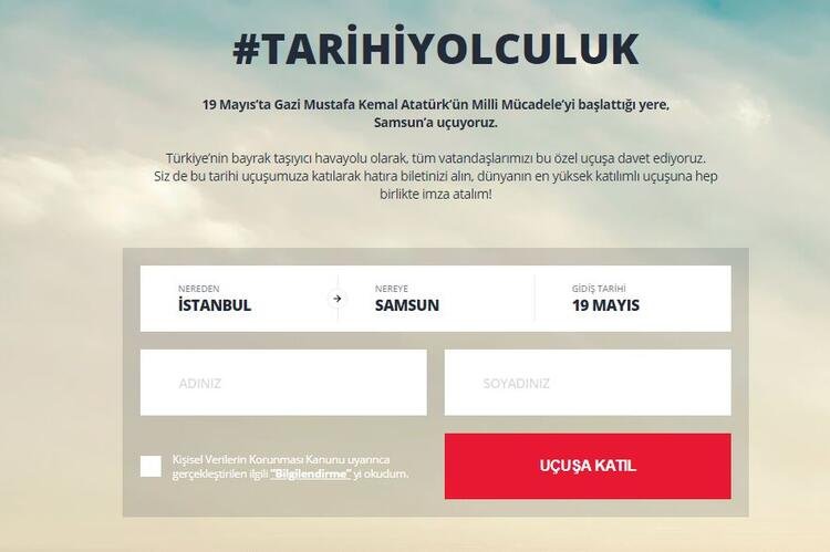 THY'nin ilgili sayfasında özel uçuş için "19 Mayıs'ta Gazi Mustafa Kemal Atatürk'ün Milli Mücadele'yi başlattığı yere, Samsun'a uçuyoruz. Türkiye'nin bayrak taşıyıcı havayolu olarak, tüm vatandaşlarımızı bu özel uçuşa davet ediyoruz. Siz de bu tarihi uçuşumuza katılarak hatıra biletinizi alın, dünyanın en yüksek katılımlı uçuşuna hep birlikte imza atalım" ifadeleri yer aldı.