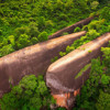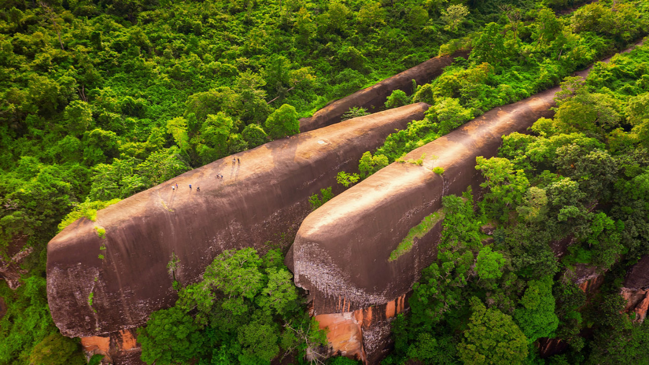 Tayland’ın kuzeydoğusunda, yoğun yeşilliklerin arasında yükselen üç dev kaya kütlesi, ilk bakışta sıradan bir doğal oluşum gibi görünebilir. Ancak gökyüzünden ya da yüksek bir noktadan bakıldığında, bu kayalar adeta bir balina ailesini andıran biçimleriyle dikkat çekiyor. Yüzyıllar boyunca rüzgarla, yağmurla ve zamanla şekillenen bu kayalar, doğanın sabırlı eliyle adım adım oyulmuş gibi. Yerel halkın “Three Whale Rock” yani “Üç Balina Kayası” adını verdiği bu etkileyici yapı, bugün hem doğal güzelliği hem de jeolojik önemiyle dikkat çekiyor.