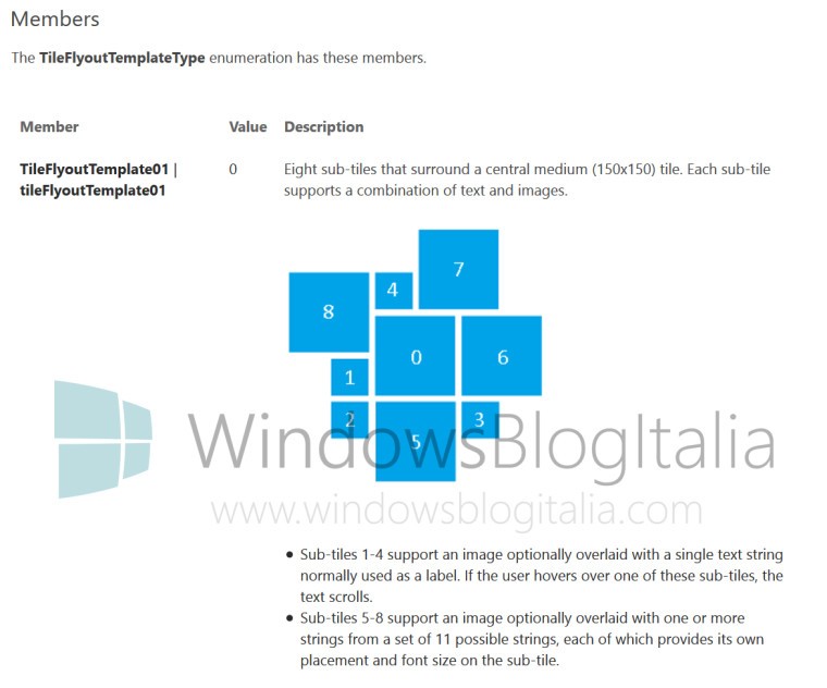 Flyout'un sergilendiği yukarıdaki ekran görüntülerinde bir kişinin bilgileri ve kişiyle ilgili diğer uygulamalardan alınan bilgiler gösteriliyor. Aşağıdaki ekran görüntüsünde ise geliştiricilere hangi alt-kutucuğun hangi işlevler için kullanılabileceği anlatılıyor.