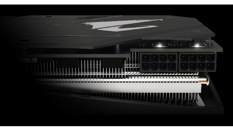 2 adet 8 pinlik güç girişinden güç sağlayan AORUS GeForce RTX 2080 SUPER 8G, buradaki LED'leriyle size anlık bilgilendirmede bulunuyor. Eğer buradaki ışıklar açıksa, güç kablosu bağlı değil. Işıklar kapalıysa ise stabil güç sağlanıyor anlamına geliyor. Öte yandan ışıklar yanıp sönüyorsa, güçte bir dalgalanma var; sistemi çalıştırmadan önce güç kaynağını kontrol etmeniz gerek. Bu ön bilgilendirme sistem sağlığı için bilhassa önemli.