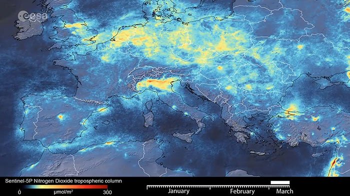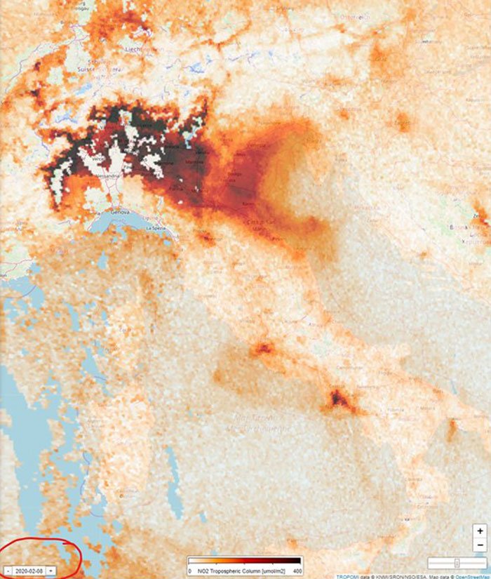 İtalya'da Corona Virüs (COVID-19) salgınından sonra insanların evlerine kapanması ve hayatın durma noktasına gelmesi ülkedeki azot dioksit oranını önemli ölçüde azaldı. Yayılmasının neden olduğu kilitlenmenin ardından İtalya'da azot dioksit emisyonları önemli ölçüde azaldı. Copernicus Sentinel-5P uydusu, hava kirliliğindeki azalmaya işaret eden NO2 emisyonlarında bir düşüş tespit etti ve en önemli değişiklik ülkenin kuzey kesiminde gözlendi.