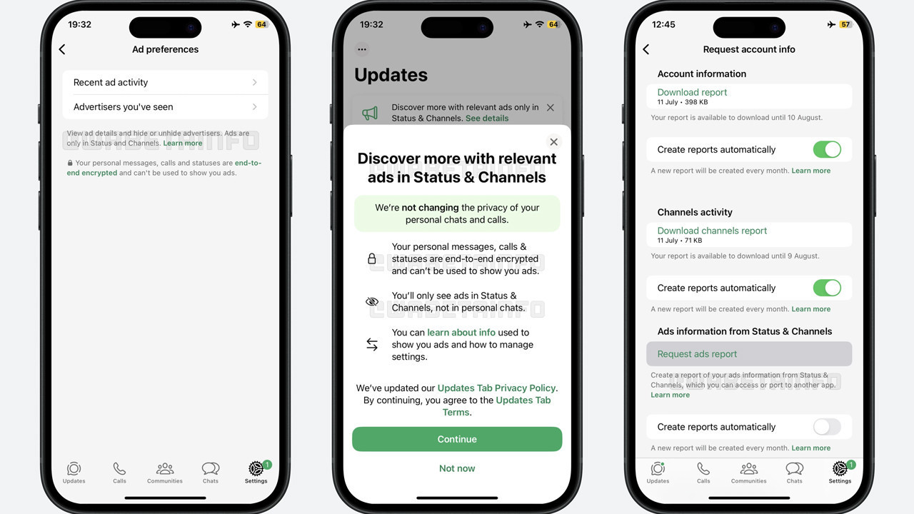 WhatsApp’ın iOS için yayımlanan son beta sürümü (25.20.10.78), reklam içeriği barındıran iki yeni özelliği daha fazla kullanıcıya sunmaya başladı: “Durum Reklamları” ve “Tanıtılan Kanallar.” Bu yenilikler, uygulamanın “Güncellemeler” sekmesinde yer alan Durumlar ve Kanallar bölümlerine sponsorlu içerikler eklenmesini sağlıyor.