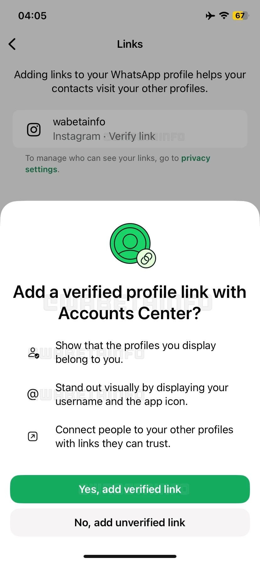 Meta, iOS için WhatsApp'ta kullanıcıların doğrulanmış Instagram profil bağlantıları eklemelerine olanak tanıyan yeni bir özellik üzerinde çalışıyor.