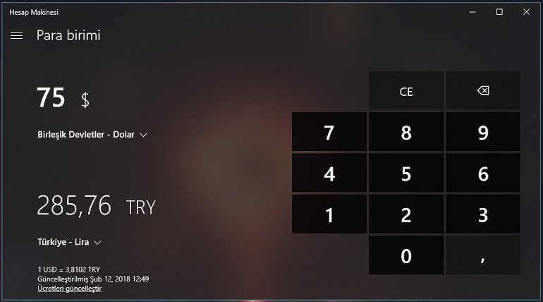 Windows 10, Fall Creators Update ile döviz kuru hesaplama özelliğini kazandı. Tek yapmanız gereken entegre hesap makinesi uygulamasını açmak ve aşağıdaki adımları takip etmek.
