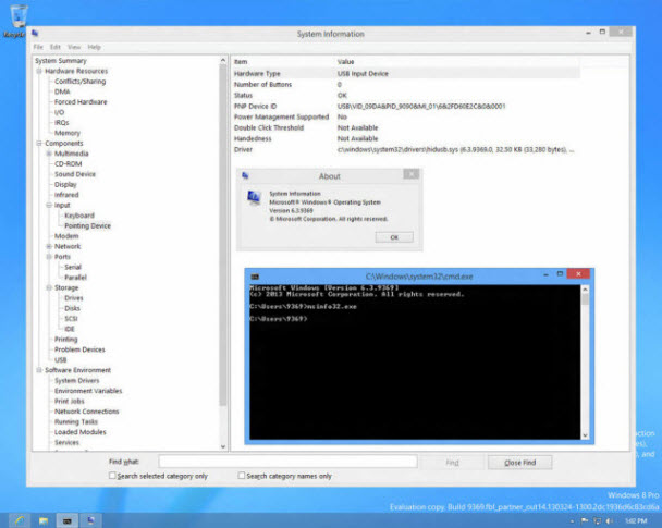WinForum.eu'nun sızdırdığı ekran görüntülerinde herhangi bir yeni işlev de göze çarpmıyor. Tam yapı numarası olan 6.3.9369.0.fbl_partner_out14.130324-1300 (x64), işletim sisteminin 64-bit Microsoft Partner sürümü olduğunu gösteriyor.