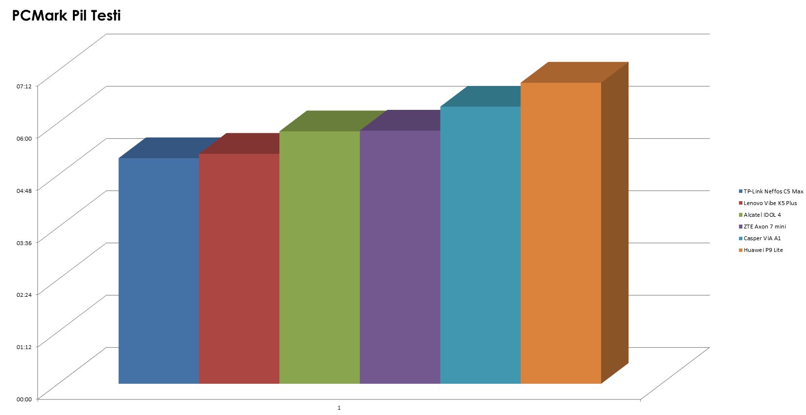 IDOL 4'ün PCMark pil testinde aldığı sonucu az önce gördünüz. Tekrar hatırlatacak olursak 5 saat 48 dakikalık skorla Axon 7 mini, VIA A1 ve P9 Lite'ın gerisinden gelen telefon, standart ekran parlaklığında 90 dakikalık HD video testimiz sırasında da yüzde 27 oranında pil kaybetti. Bu da Vodafone Smart Ultra 7 ve Moto G4'e kıyasla yüzde 10 daha fazla demek.