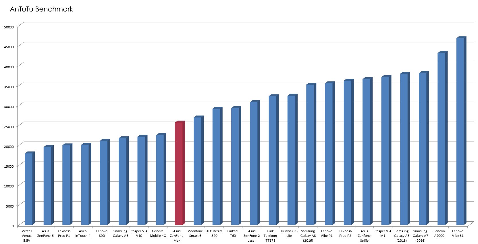 Peki, ZenFone Max sentetik testlerde neler ortaya koyuyor? Şimdi aldığımız sonuçları tablolarla sizlerle paylaşalım.