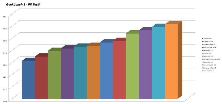 3000 mAh bir bataryanın sahibi olan telefon, geniş bataryasıyla günlük kullanımları karşılıyor ve tam günü çıkartabiliyor. Fakat yoğun kullanım altında yaptığımız testlerde 4 saat 59 dakikalık bir sonuç alan telefon, az sonra paylaşacağımız tablolarda da göreceğiniz gibi pek çok rakibin gerisinde kalıyor.