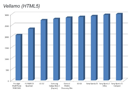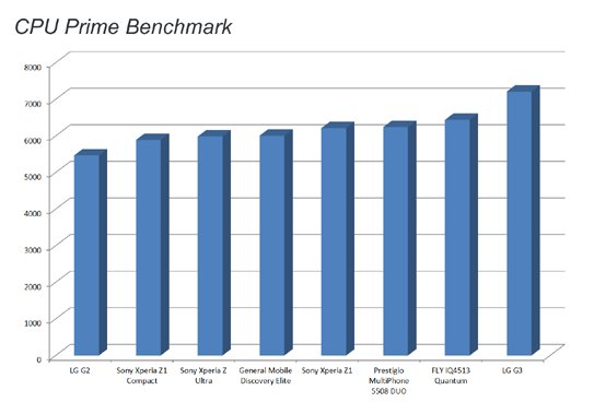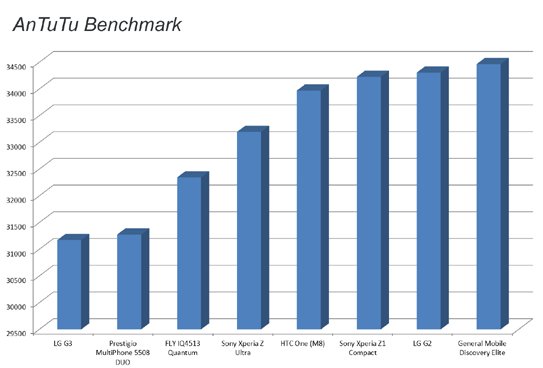 CPU Prime Benchmark'a geldiğimizde 6441 puan aldığını görüyoruz. Yine diğer ceplerle kıyasladığımızda Sony Xperia Z Ultra, General Mobile Discovery Elite, Xperia Z1 ve LG G3'le yan yana olduğu görülen Quantum, HTML5 testinden ise yine geçer not almayı biliyor. Burada da Prestigio MultiPhone 5508 DUO'dan bir tık önde olan telefon, LG'nin bir önceki amirali G2'nin takipçisi.