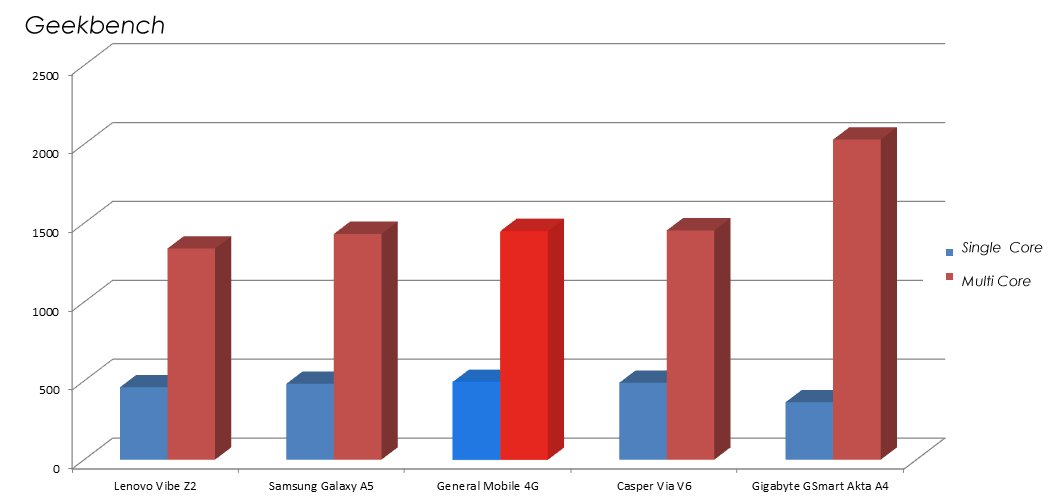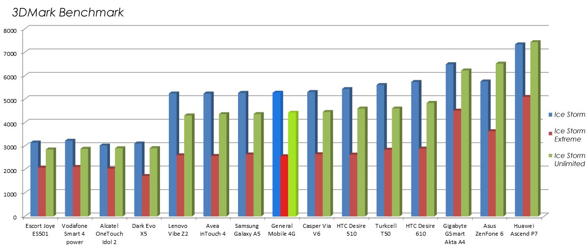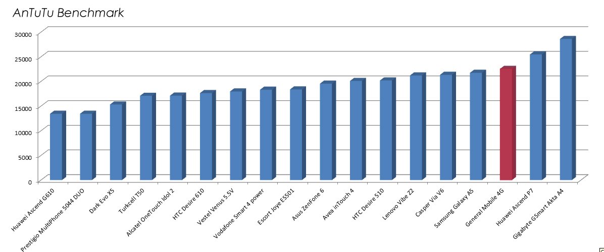 Peki, General Mobile 4G sentetik test sonuçlarında ne durumda. Şimdi tablolar halinde sizlerle paylaşalım.