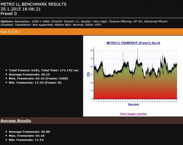 Gayet akıcı bir oyun deneyimi sunan Gigabyte P27G, Metro: Last Light Benchmark testinden maksimum 63 FPS, ortalama ise 36 FPS alabiliyor. Bizim oynarken gördüğümüz değer ise genellikle 50 FPS civarındaydı. Bu arada test sırasında VSYNC'in açık olduğunu da söyleyelim.