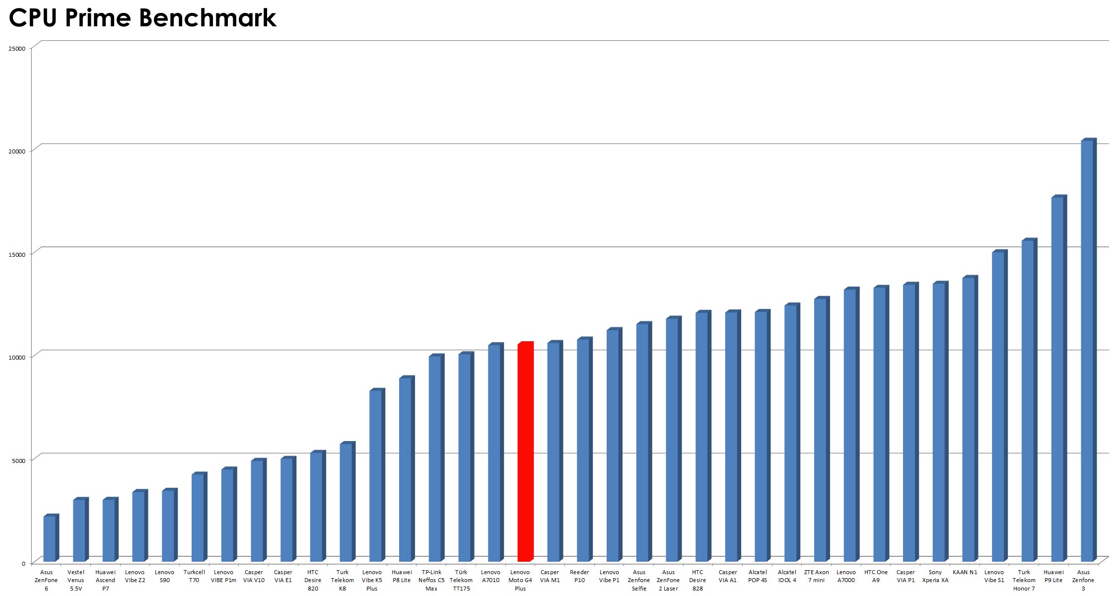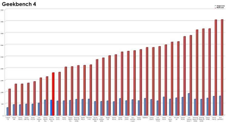 Test sonuçlarına baktığımızda, G4 Plus'ın rakipleriyle arasında çok mesafe olmadığını görüyoruz. Çevresinde olan telefonlar arasında Casper VIA P1, Alcatel IDOl 4 ve ZTE Axon 7 mini gibi modeller yer alıyor. Genel olarak iyi performans gösterse de, eğer sizin için performans önemli bir unsursa, o zaman 3 veya 4 GB RAM'li modellere bakmanızı öneriyoruz.