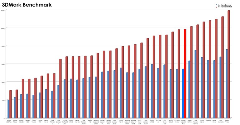 AnTuTu skoruyla 45659 puan alan telefon, CPU Prime'da 10529, GeekBench 4'te de tek çekirdekte 656, çoklu çekirdekte 1818 puan topladığını görüyoruz. Telefonun grafik tarafı ise iyi seyrediyor. 3DMark Benchmark'tan aldığı iyi sonuçların yanı sıra telefonun Epic Citadel testinden de 59 FPS sonucunu aldığını söyleyelim. Ayrıca telefonla oyun oynarken aldığımız performansın da hoşa gidecek cinsten olduğunu belirtmek gerekiyor. Asphalt Xtreme ve SBK 16 gibi oyunlarda hiçbir sorunla karşılaşmadık.