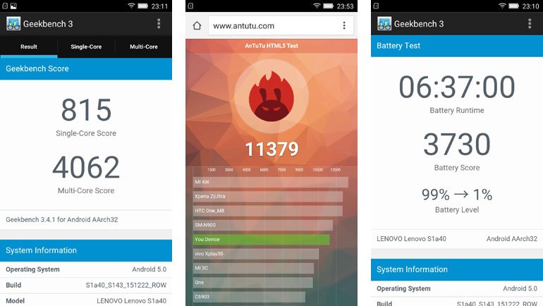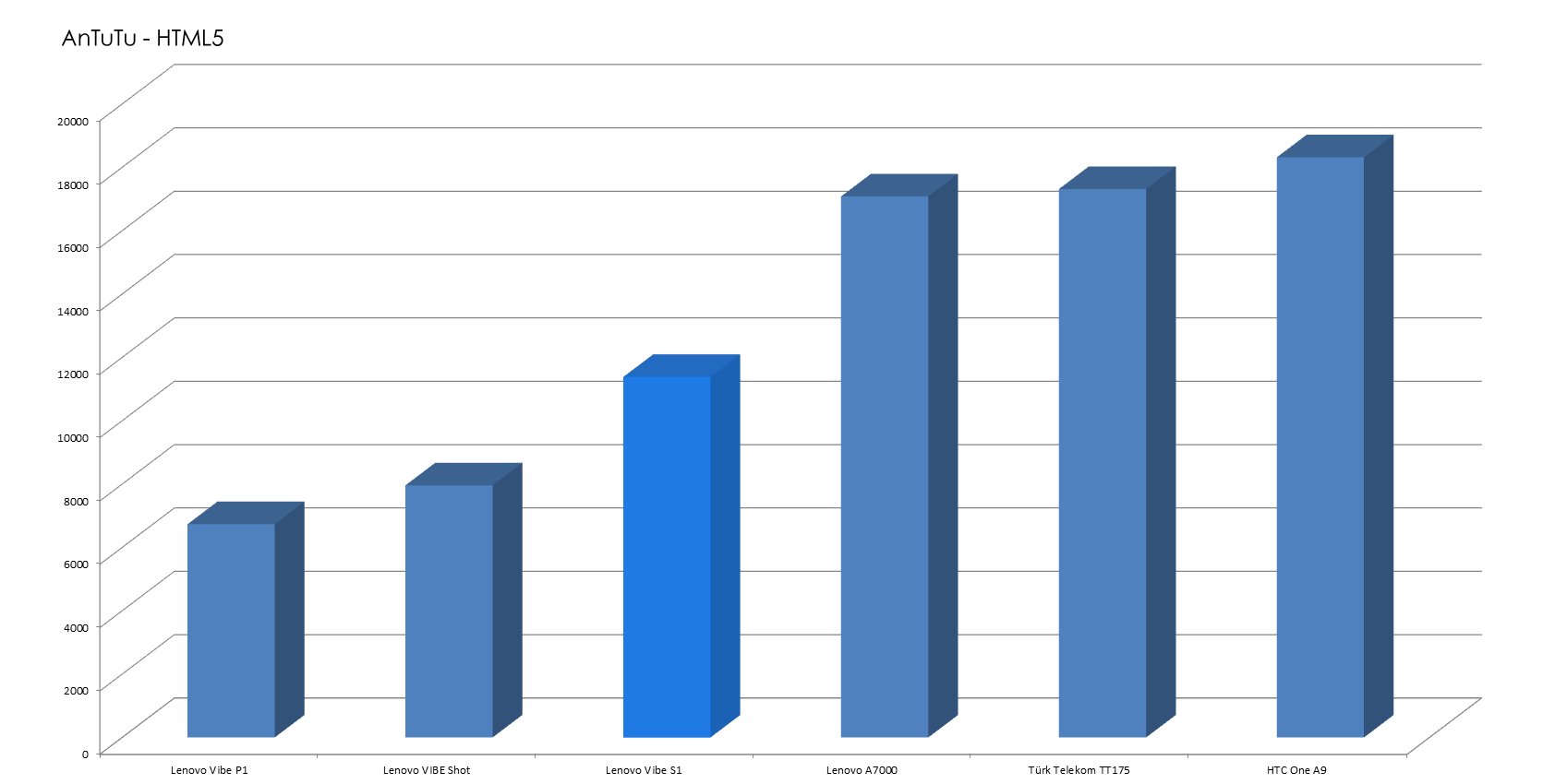 Vibe S1'in tarayıcı performansını ise ortalama bulduk. Ancak burada telefonun dahili tarayıcısından ziyade Chrome'u kullanmanızda fayda görüyoruz. Zira Chrome, Lenovo UC Browser'dan daha hızlı çalışıyor. Telefona uyguladığımız AnTuTU HTML 5 test sonucu ise şöyle...