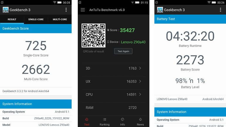 VIBE Shot, performans olarak da orta – üst segmente yerleşecek bir telefon modeli. Qualcomm Snapdragon 615 işlemciyle çalışan telefon, 8 çekirdekli bu işlemcisiyle iki Cortex-A53 yongada 1.7 GHz ile 1.0 GHz frekansları sunuyor. Grafik biriminde Adreno 405'i bulunduran telefon, 3 GB RAM ve 32 GB dahili hafıza birimlerinin de sahibi. Ayrıca hafızayı microSD kartla 128 GB daha genişletebiliyorsunuz. Bunlarla teknik kadro olarak yakın zamanda incelediğimiz orta – üst segment cepler arasında iyi bir yerde duran telefon, hem işlem hem oyun performansıyla gayet başarılı.