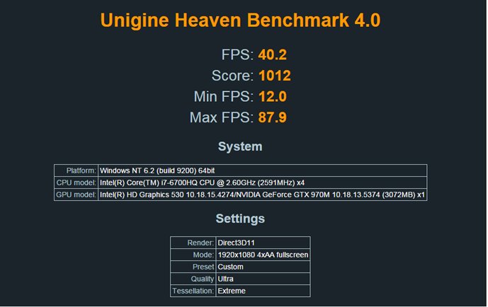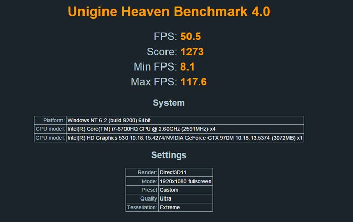 Gelelim ekran kartına. GE72 6QF Apache Pro'da Nvidia GeForce GT 970M kullanılmış. 3 GB kapasitesinde GDDR5 belleğe sahip ekran kartıyla günümüzün performans gerektiren oyunlarını rahatlıkla oynamak mümkün. Elbette diğer teknik ekipmanların da su götürmez performansıyla beraber. Biz Apache Pro'ya olduğumuz süre boyunca, yüksek performans isteyen oyunlardan Witcher 3, Battlefield 4 ve Far Cry 4'ü oynama fırsatı bulduk. Her bir oyunu en üst grafik detaylarında değerlendirdiğimiz test senaryolarımızın yanında elbette sentetik testler de bulunuyordu. Şimdi aldığımız sonuçları sizlerle paylaşalım.