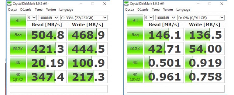 Apache Pro, Intel'in yeni işlemci ailesinden Core i7-6700HQ'yu taşıyor. 2.60 GHz hızında çalışan bu işlemci, bu dizüstünün performans canavarı olması için fazlasıyla yeterli. Bu yılın üçüncü çeyreğinde piyasaya çıkan ve 4 fiziksel çekirdek, 8 işlem biriminin sahibi olan Core i7-6700HQ, tavan frekansta ise 3.5 GHz'leri bulabiliyor. Buna ek olarak 16 GB kapasitesinde ve 2133 MHz frekansında çalışan DDR4 RAM'leri de gövdesinde bulunduran Apache Pro, hem SSD hem mekanik diske sahip. 256 GB SSD'nin yanında 1 TB gibi geniş bir depolama alanı sunan laptop, bu sayede hem performansa hem kapasiteye oynuyor.