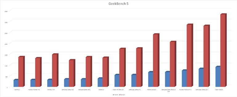 İşlemci çekirdek performansına geldiğimizde, burada da Geekbench 5 testini kullanıyoruz. Bu testte tek çekirdek skoruyla 913 puan toplayan telefon, tüm çekirdekleri çalıştığında ise 3318 puana erişebiliyor. Bu puanlarla da telefonu tabloya yerleştirdiğimizde, yine üst basamağa yerleştiğini görüyoruz.